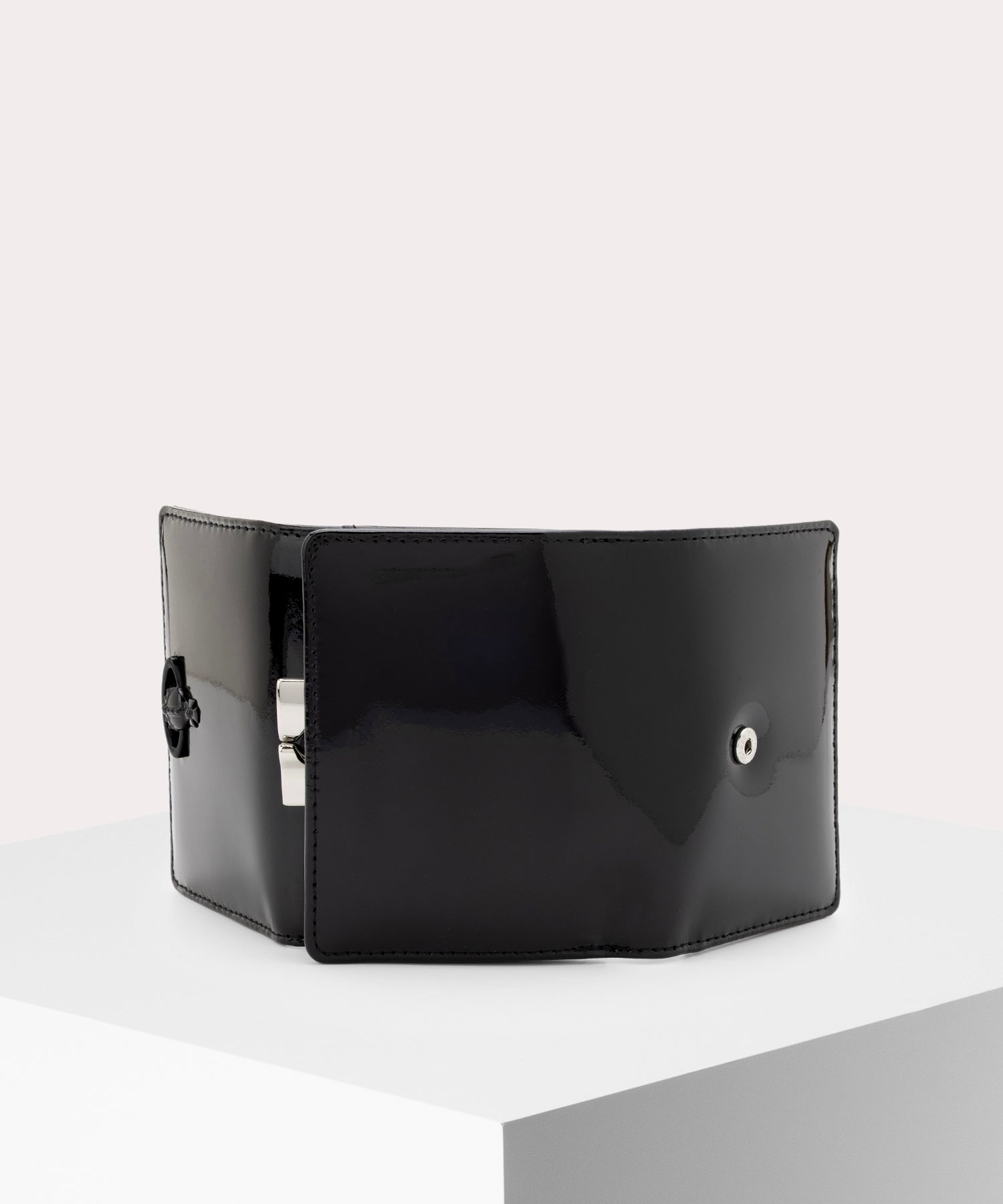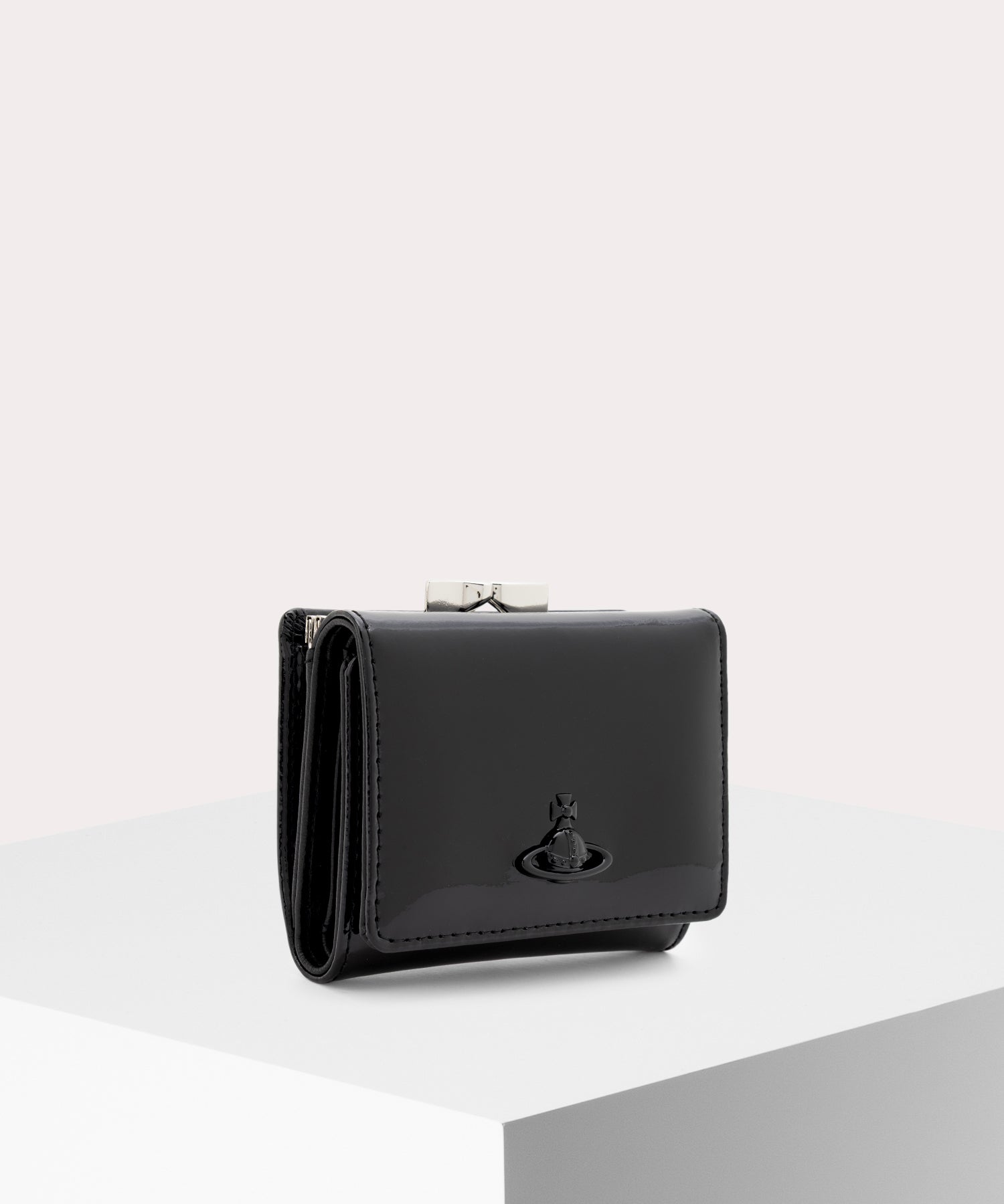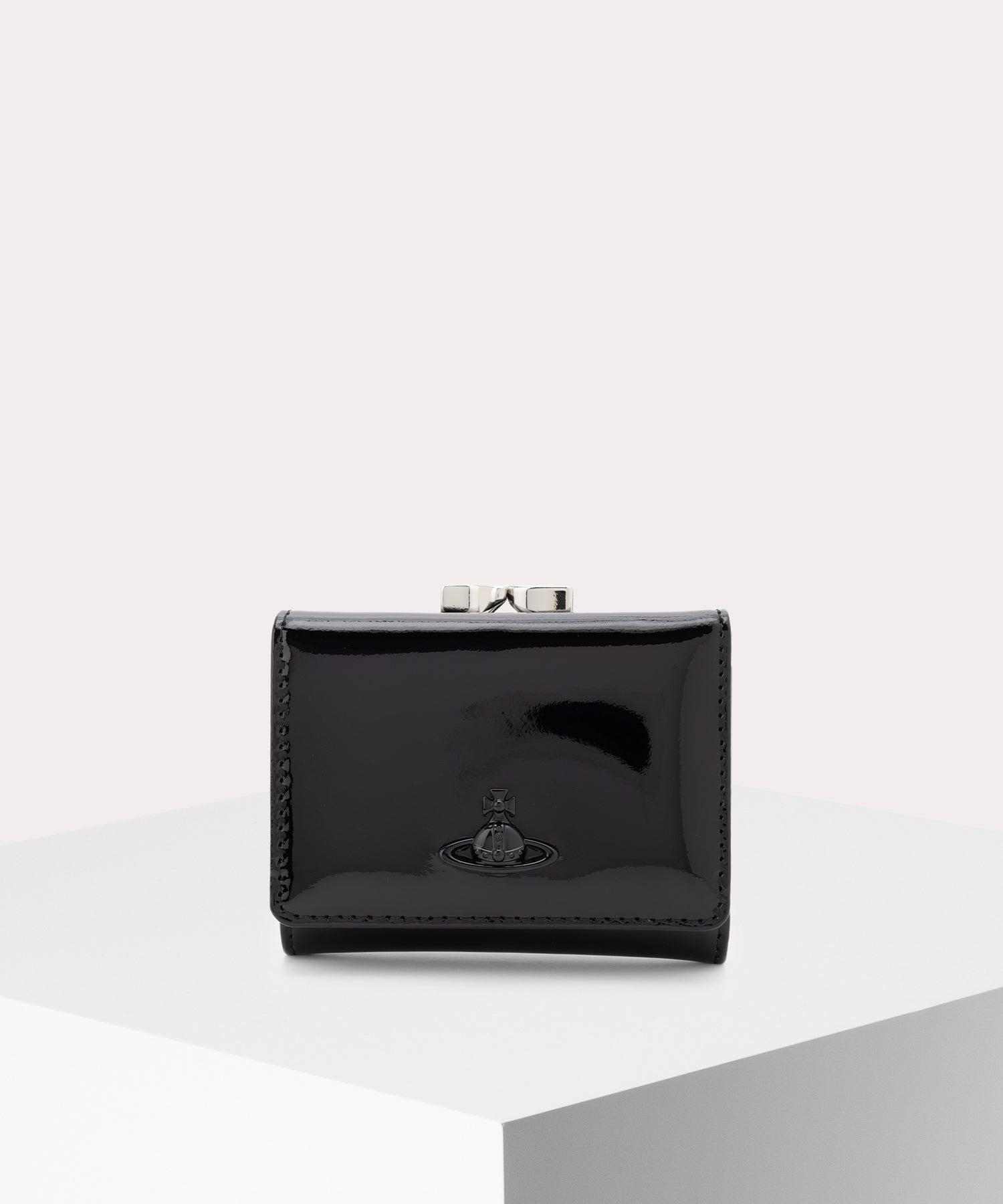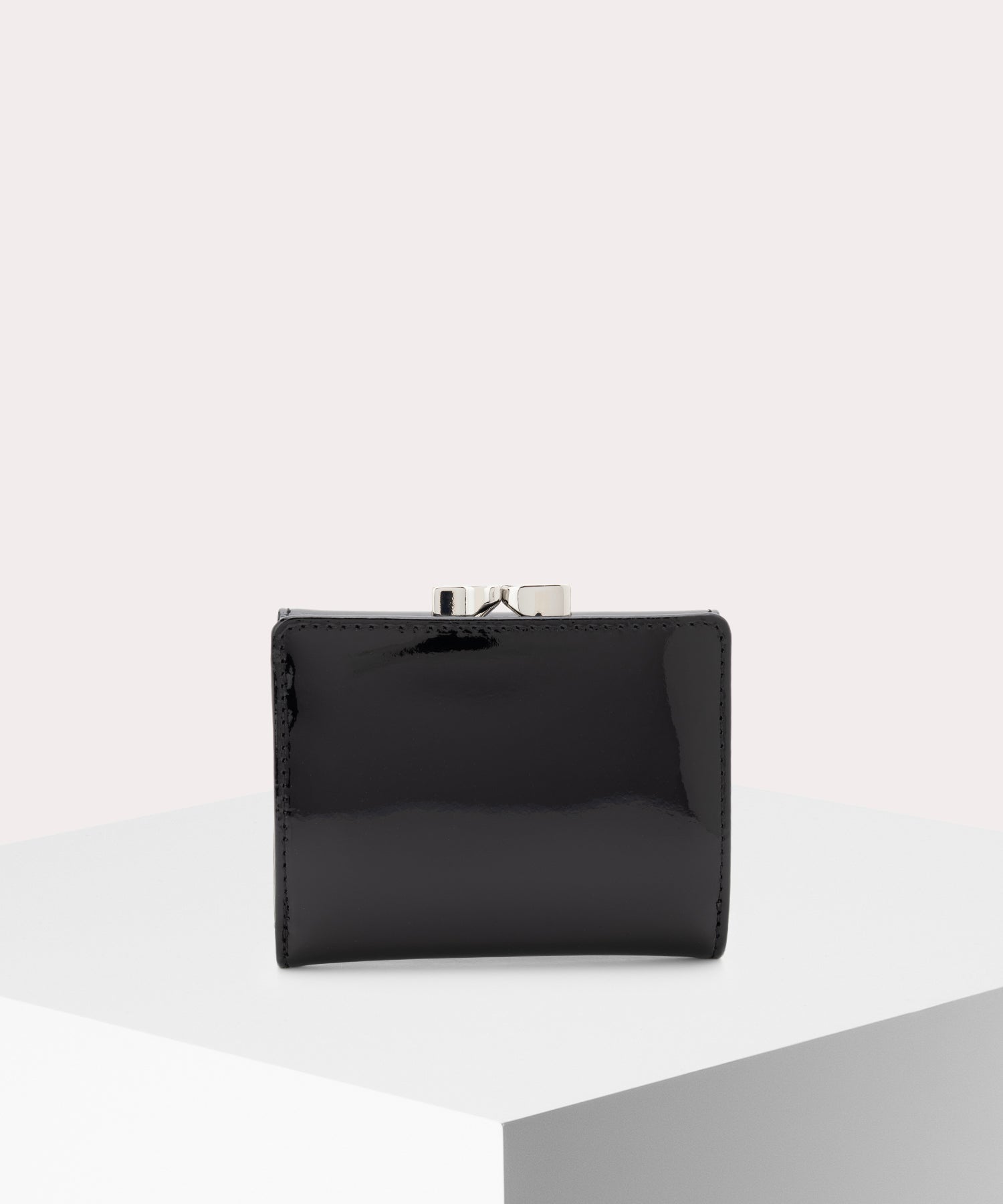 パテントコートを施したフルグレインレザーの美しい光沢が魅力の「SHINY PATENT 口金三つ折り財布」。口金が映える洗練されたデザイン。内部には札入れ、カード入れを備え、コンパクトながら収納力も抜群です。