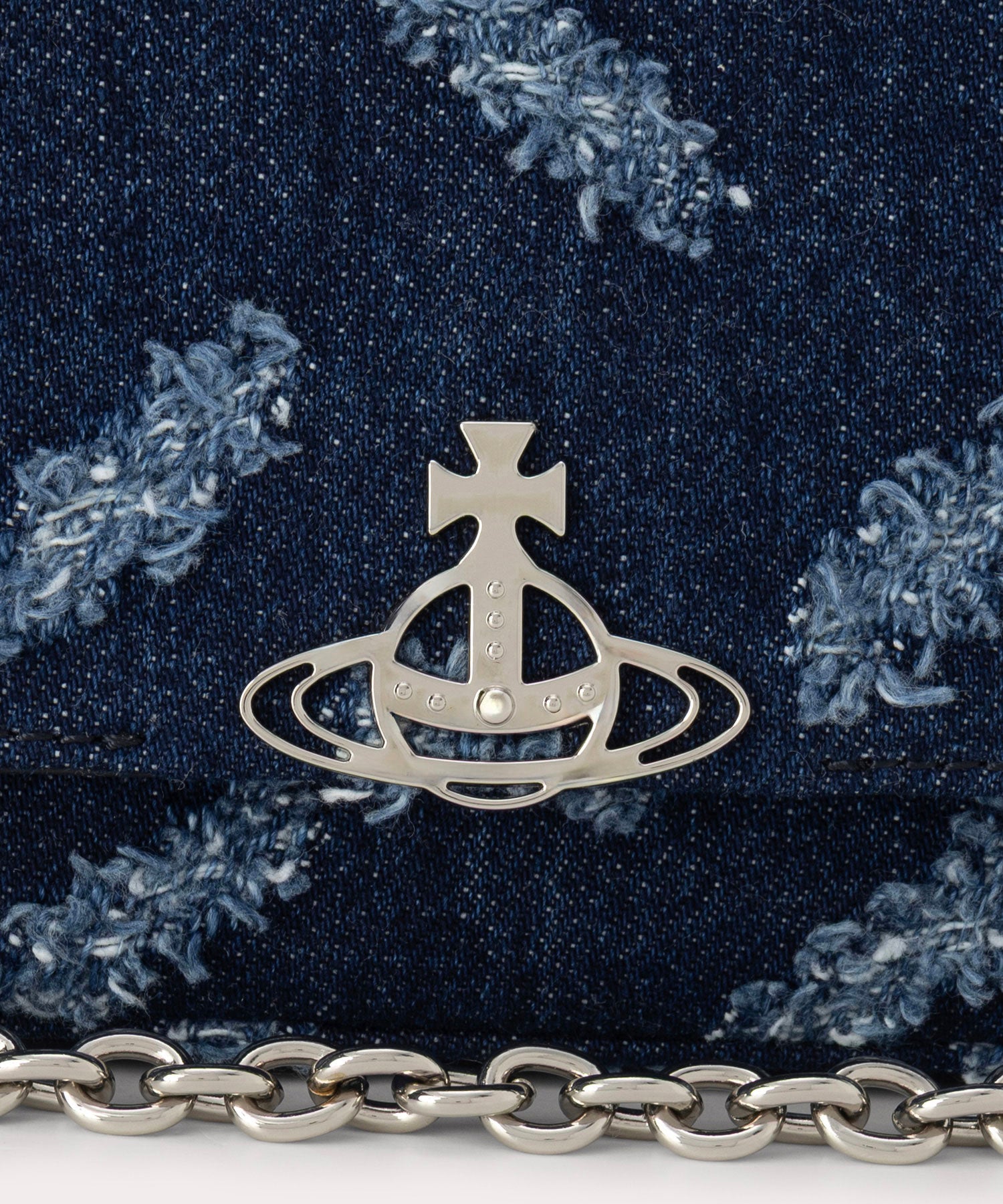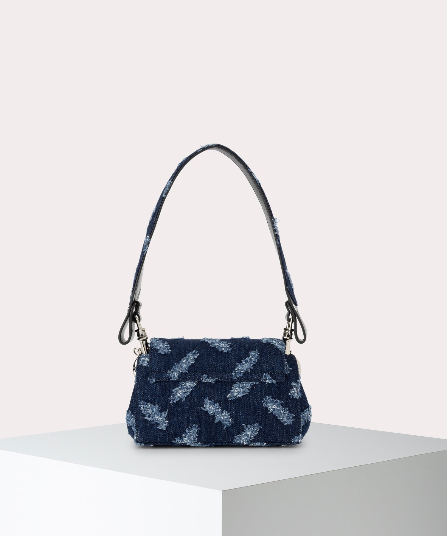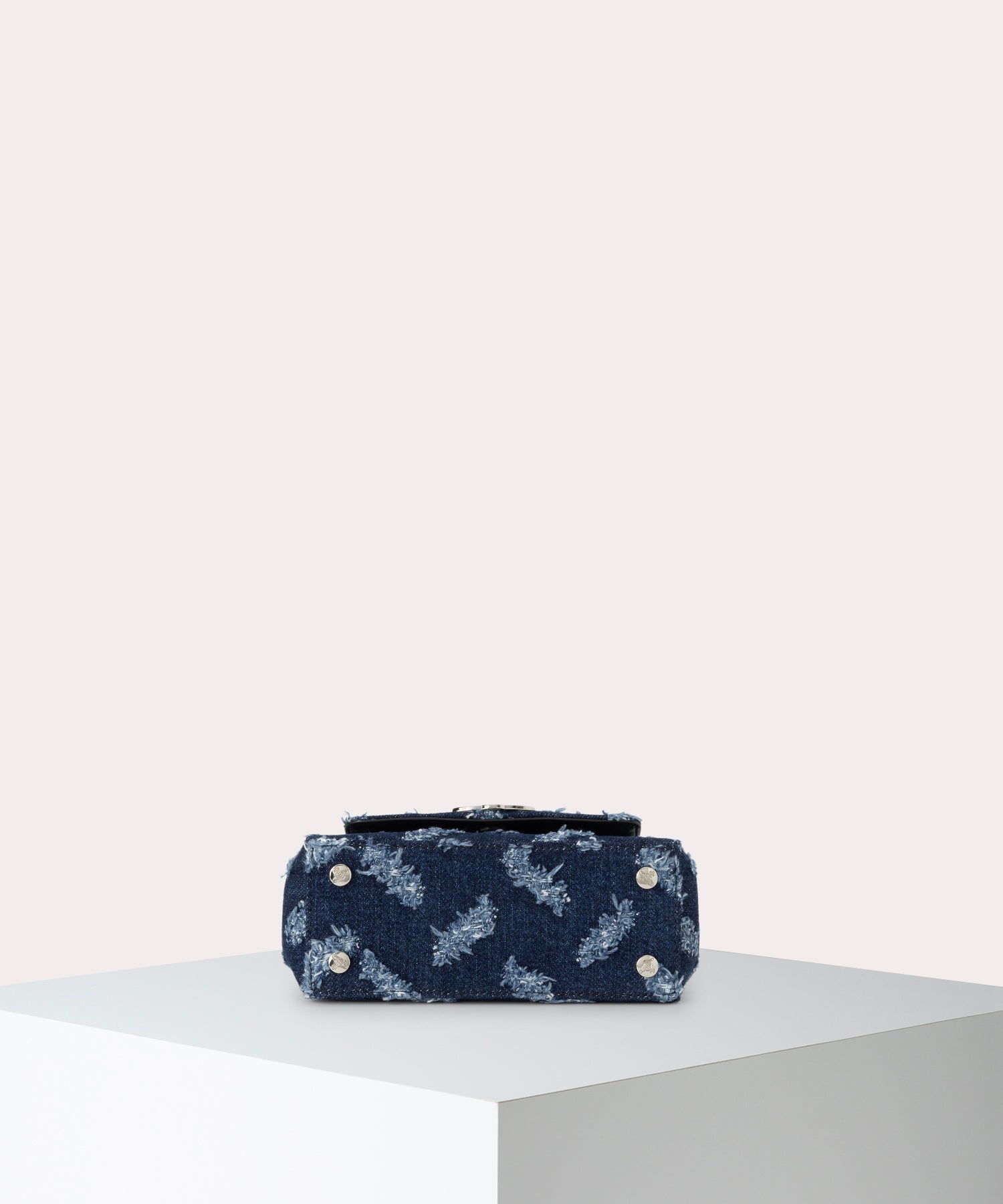 1991年のコレクション「Cut、Slash and Pull」からインスピレーションを得たデザインの「RIPPED DENIM HAZEL ハンドバッグS」。デニムにレーザー加工で裂け目をつけ、スラッシュ加工を施しています。メタルラインORBのアクセントが特徴です。ハンドバッグとしてだけでなく、ショルダーバッグとしてもお使いいただけます。
