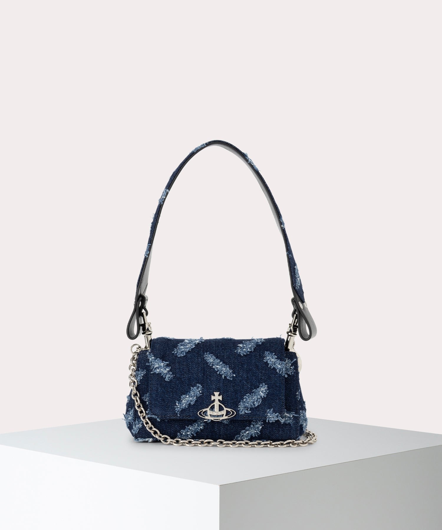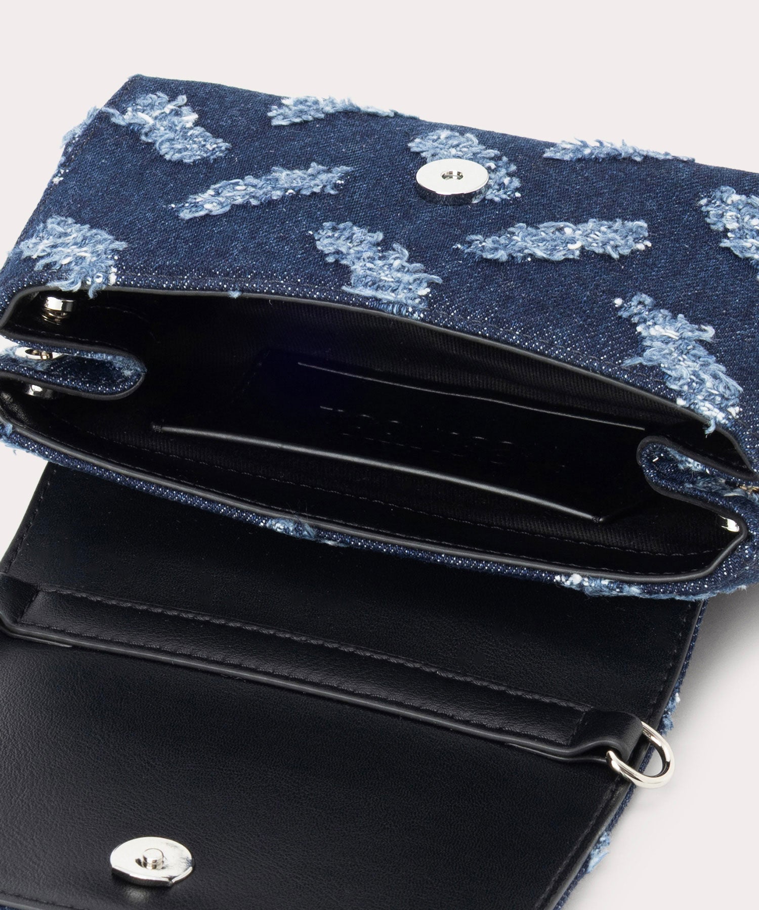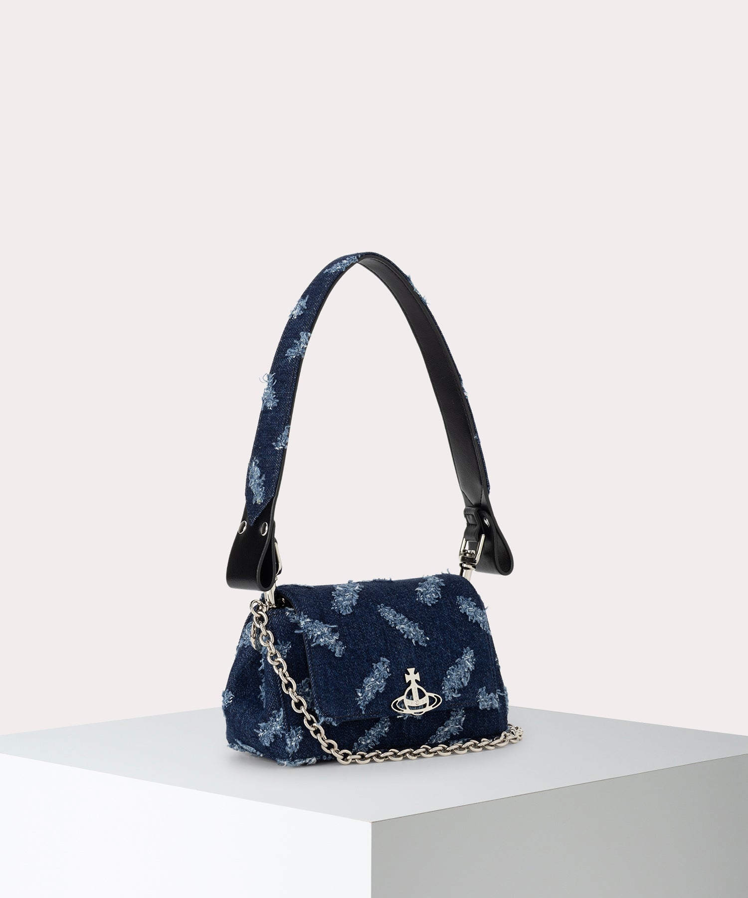 1991年のコレクション「Cut、Slash and Pull」からインスピレーションを得たデザインの「RIPPED DENIM HAZEL ハンドバッグS」。デニムにレーザー加工で裂け目をつけ、スラッシュ加工を施しています。メタルラインORBのアクセントが特徴です。ハンドバッグとしてだけでなく、ショルダーバッグとしてもお使いいただけます。