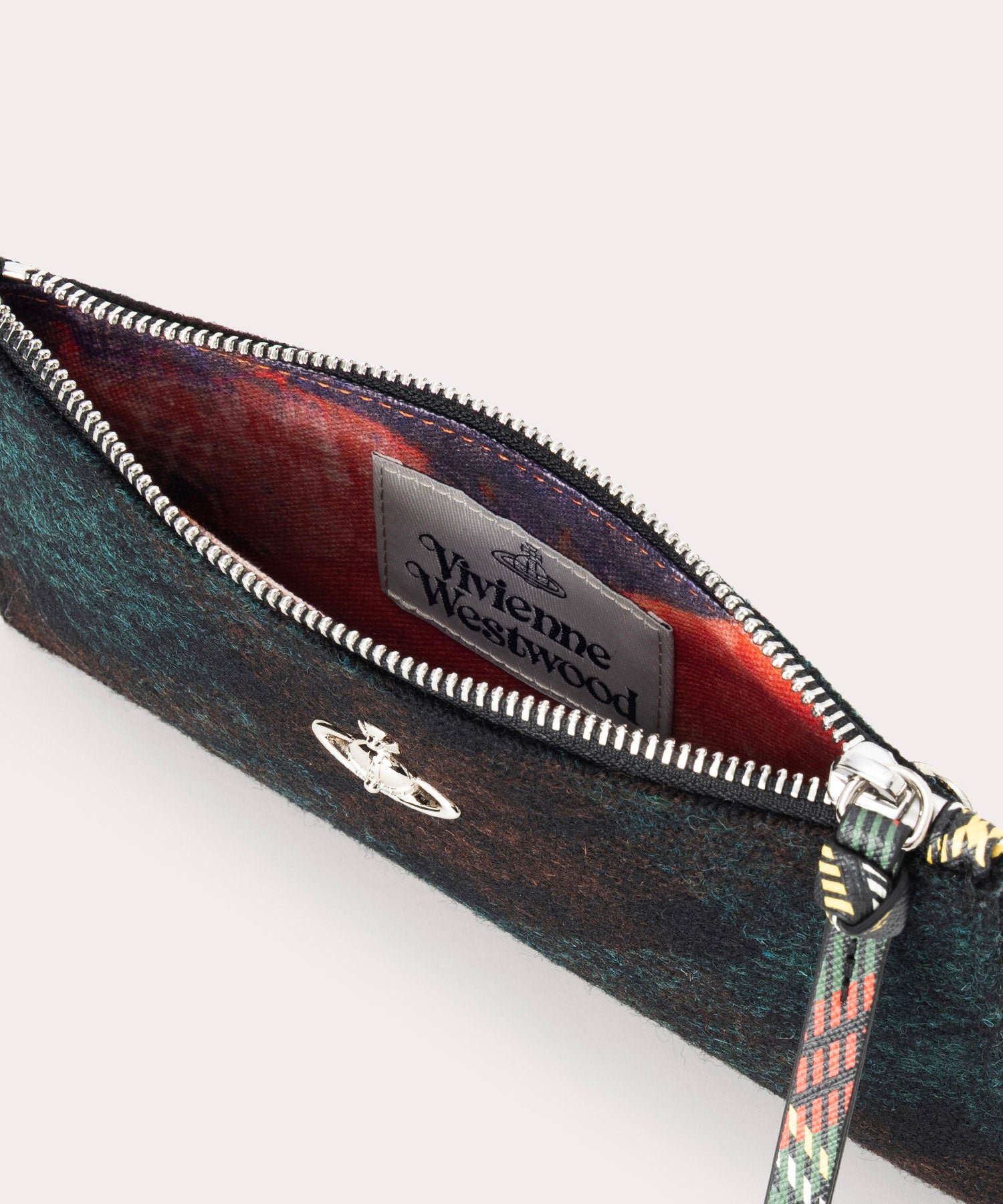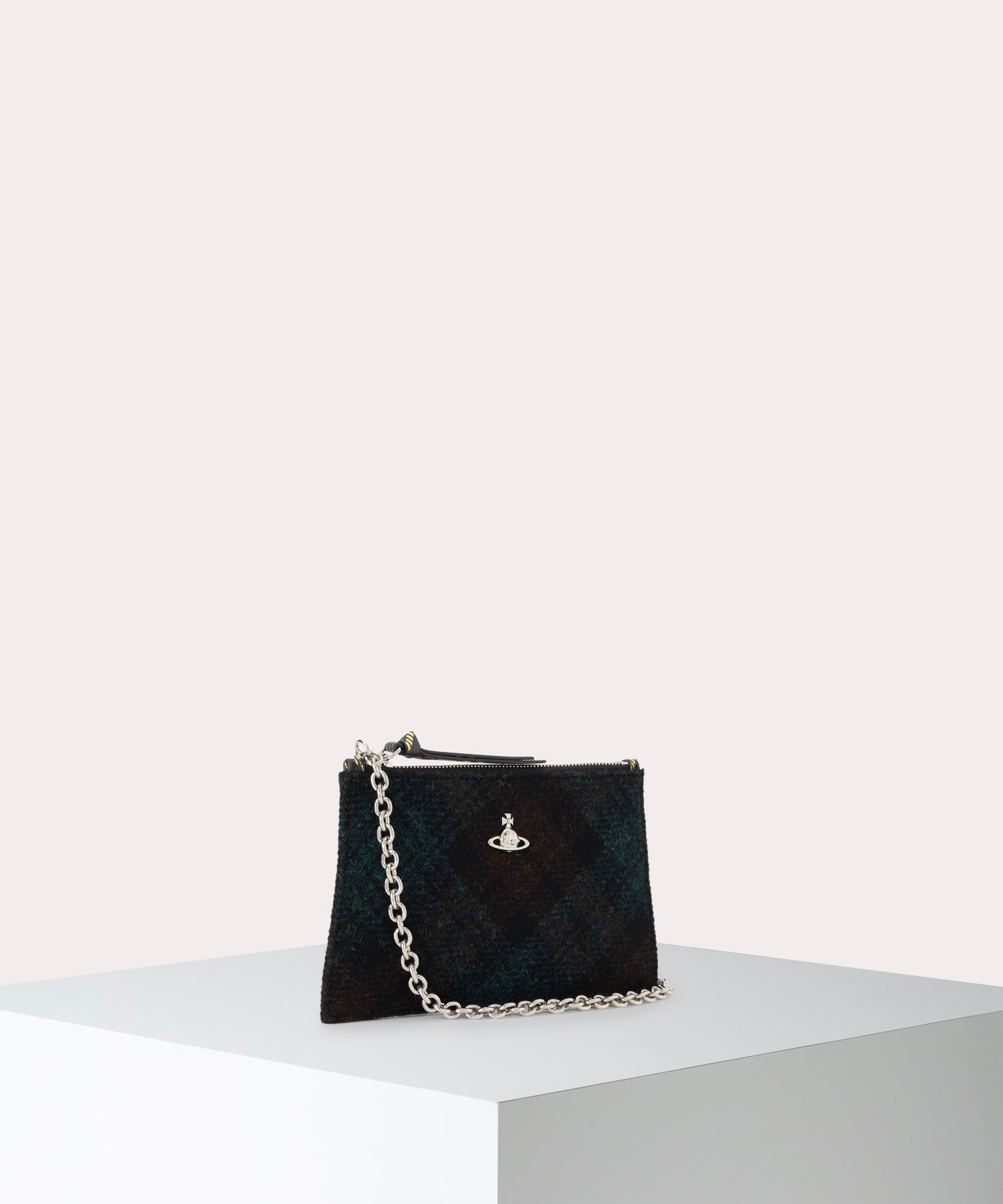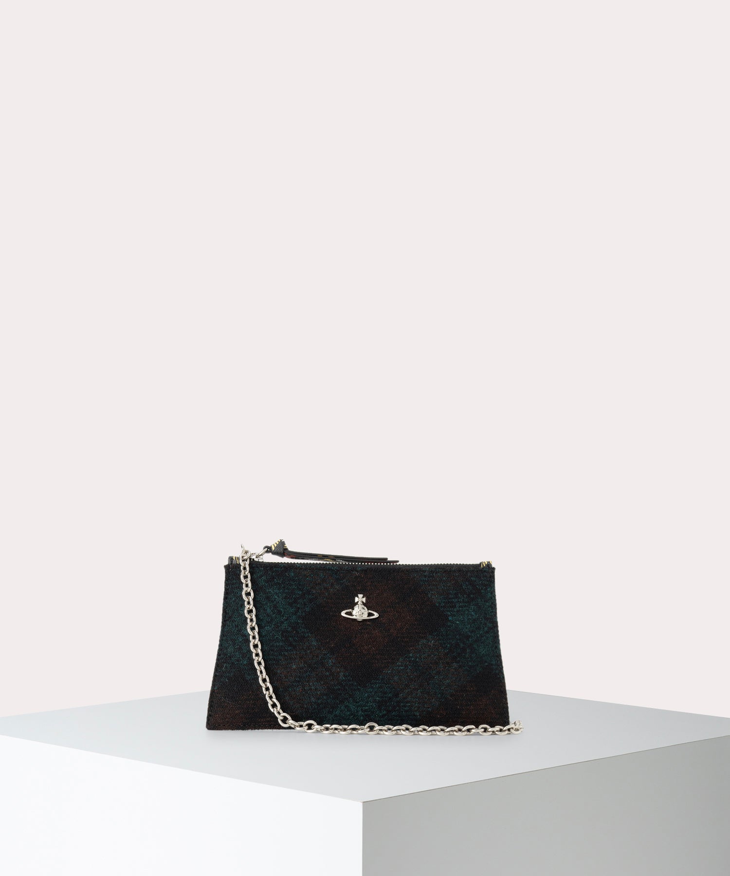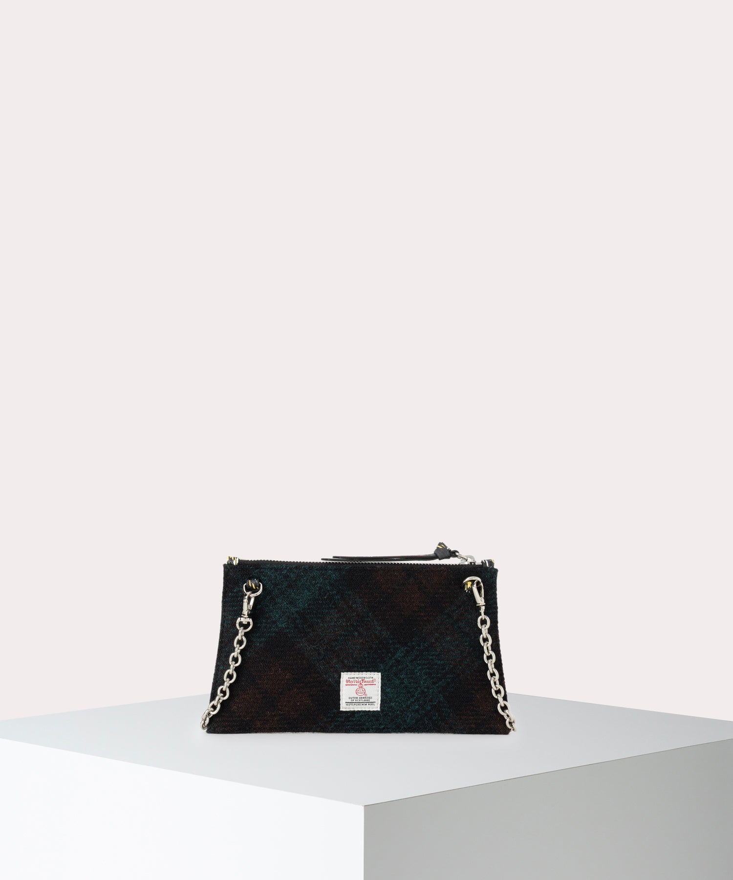 ハリスツイードのタータンチェック柄が特徴の「HARRIS TWEED CHECK クラッチバッグ」。起毛の温かみある外観なので、秋冬ムードを取り入れやすいアイテムです。裏地には、英国の伝統を象徴するクラシックなユニオンジャックが施され、フロントの3D ORBがアクセントです。