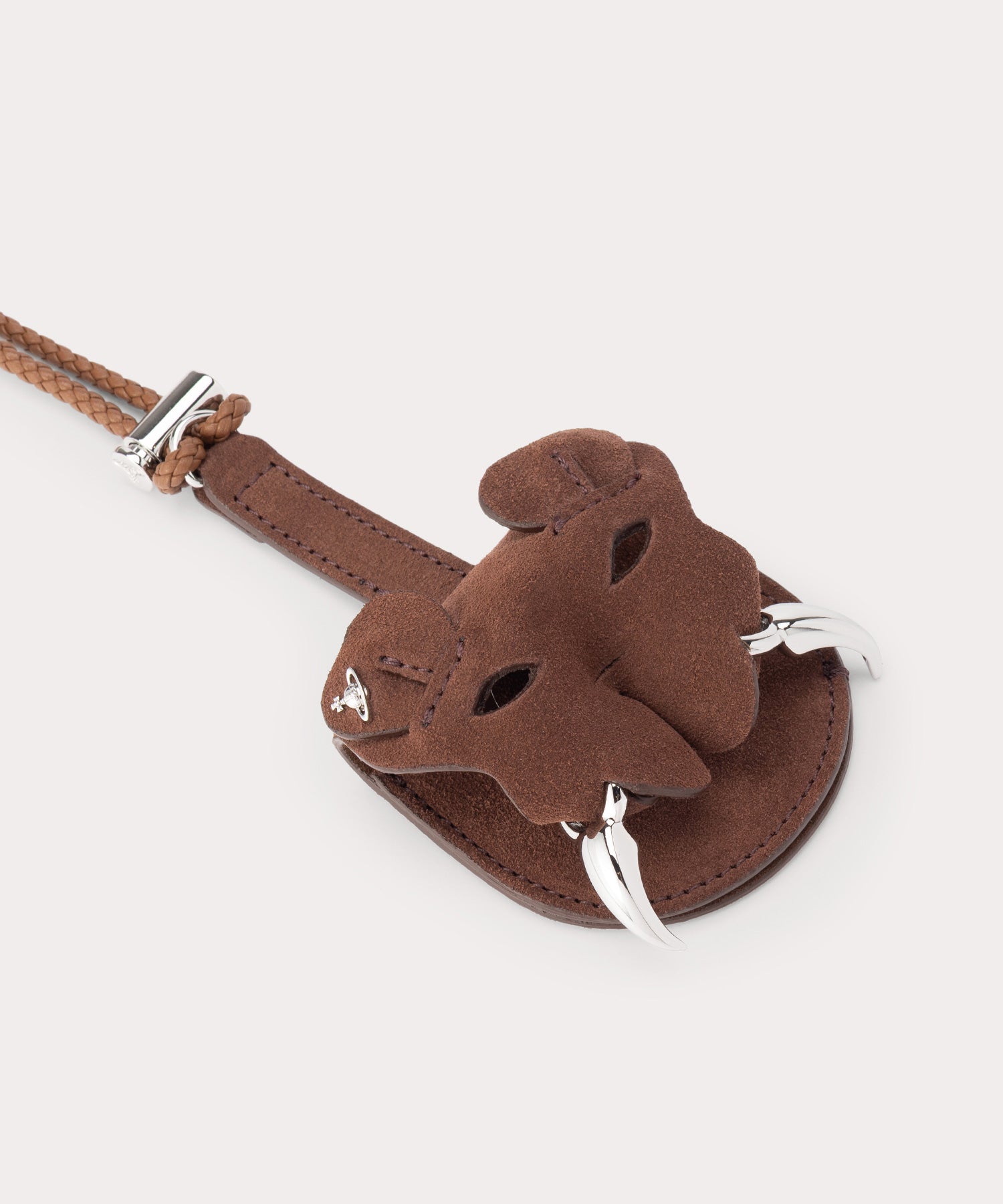 メゾンのアイコニックな「タイガー」モチーフを復活させた「TIGER HEAD チャームストラップ」。光沢のある仕上げのレザーで作られ、シルバートーンの牙と耳のミニチュアORBがアクセントを添えるデザインです。首から下げるだけでコーディネートのポイントになります。
