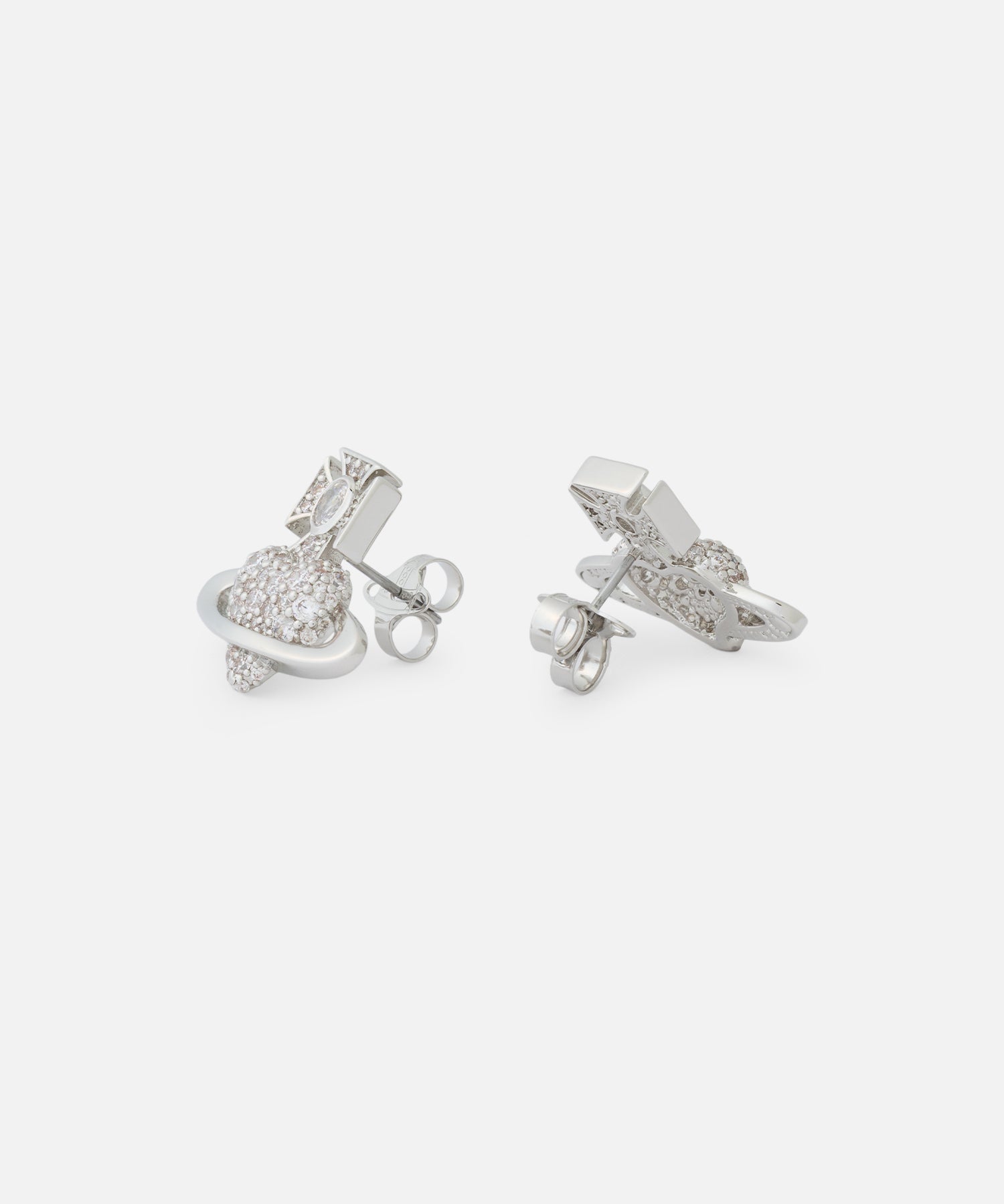 Vivienne Westwoodのクラシックなアシンメトリーハートのデザインが特徴の「AGNATHA ピアス」。大きなハートには、サターンリングとクロストップに沿ってキュービックジルコニアがちりばめられています。環境に配慮しリサイクルブラスを使用しています。