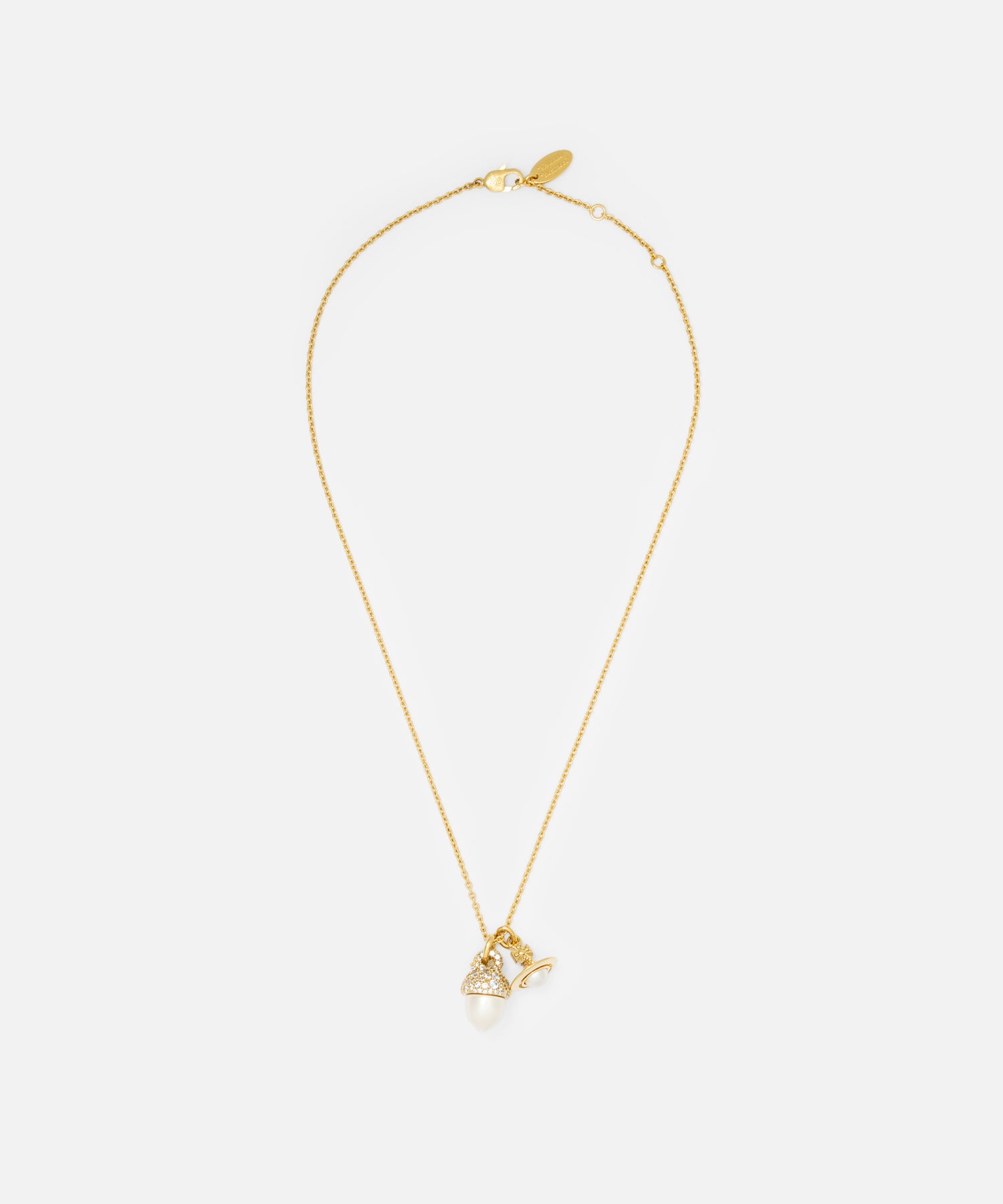 ブランドのジュエリーを象徴するドングリのモチーフが、新たな進化を遂げた「LUCILLE ネックレス」。パールのように艶やかなコーティングと繊細なパヴェの輝きを纏ったドングリを、華奢なトレースチェーンにあしらいました。その隣では、ポリッシュされたメタルフレームの小さなORBが優雅に揺れ動き、デコルテに知的な遊び心をプラス。ブランドのヘリテージと未来が交差する、ミニマルながらも奥深いストーリーを宿した逸品です。環境に配慮しリサイクルブラスを使用しています。