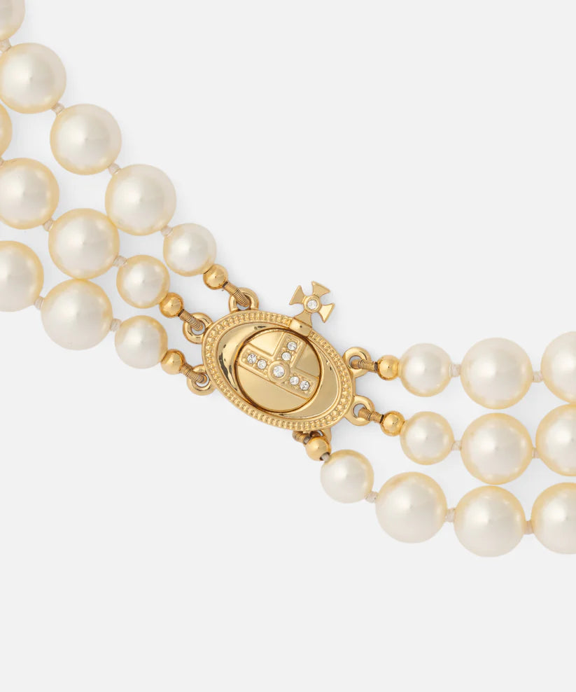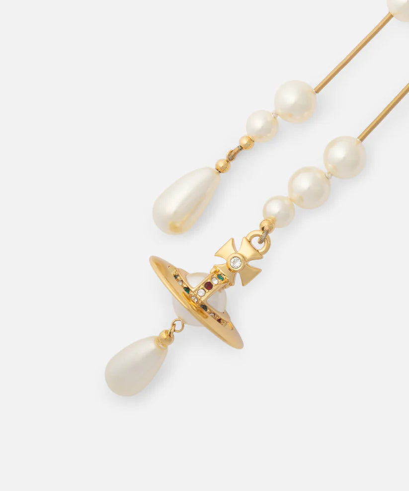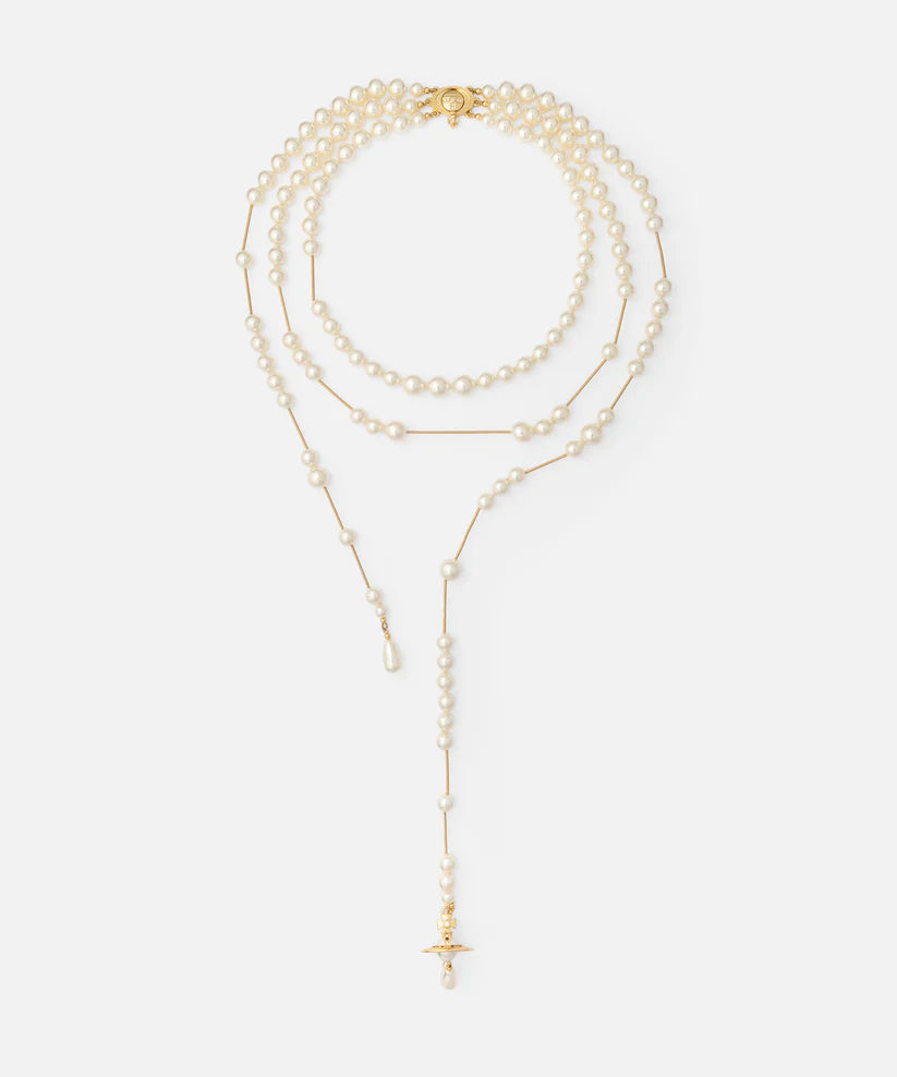 ※Vivienne Westwoodは自然環境保護の観点より、生産過程において動物性素材を使用しないグラスベース・パールを主に採用しています。これらのパールは全て自然界のものと同様の質感を持つように生産し、敢えて不揃いに仕上げています。このため一粒一粒表情が異なる場合がございますが、これらは商品の特性であり、不良品ではございません。何卒ご了承のほど、よろしくお願いいたします。