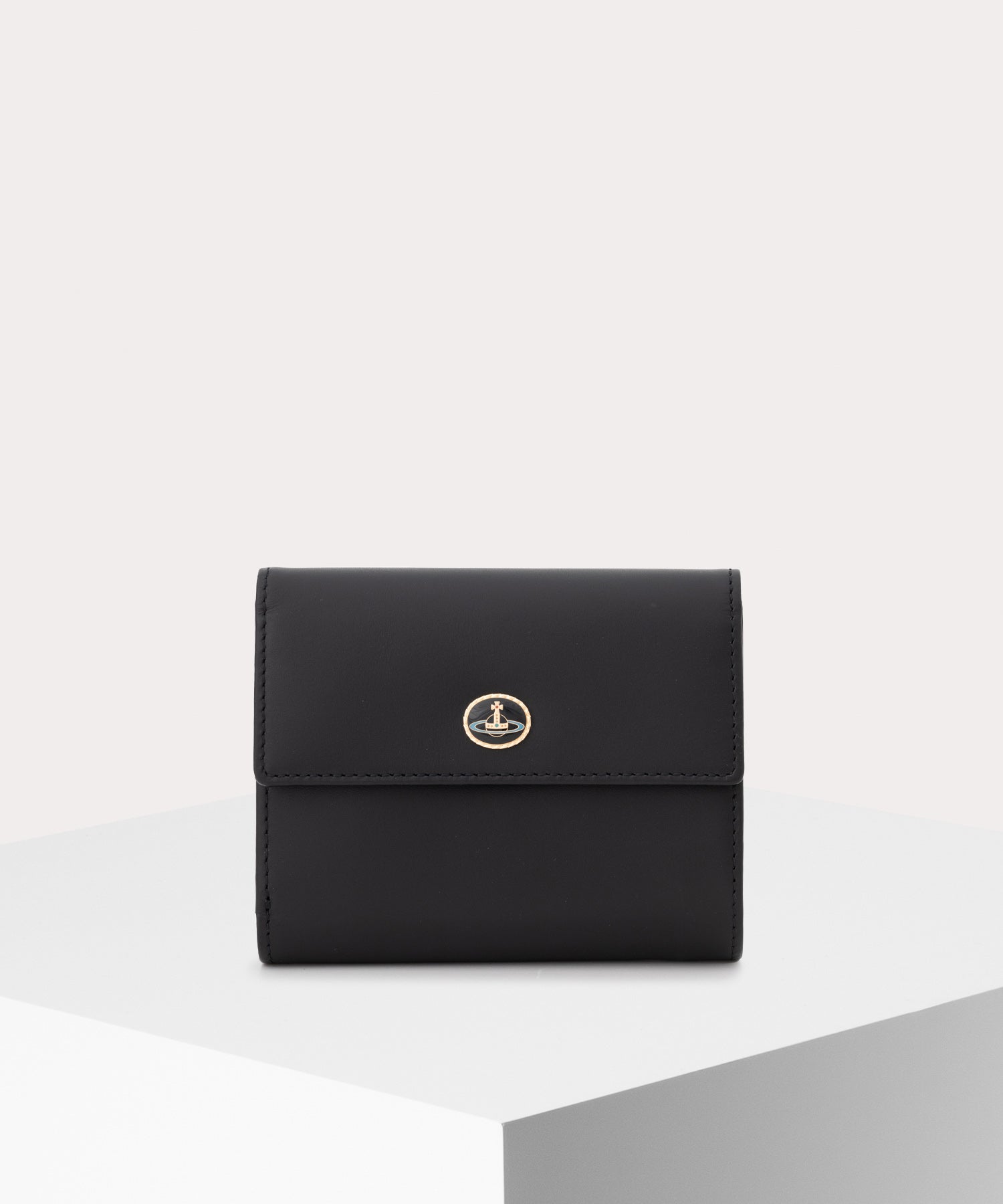 傷や指紋のつきにくい加工を施した柔らかな牛革素材を使用した「VINTAGE ORB 口金三つ折り財布」。本体のカラーとマッチした配色の可愛らしいエナメルボタンORBがフェミニンな印象に。コンパクトでありながら収納力に優れています。